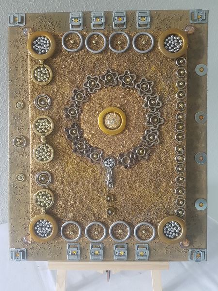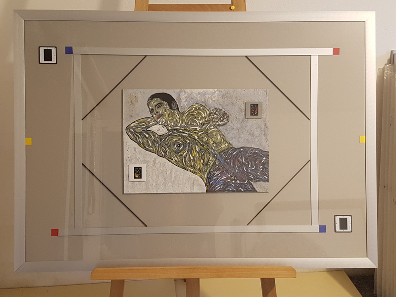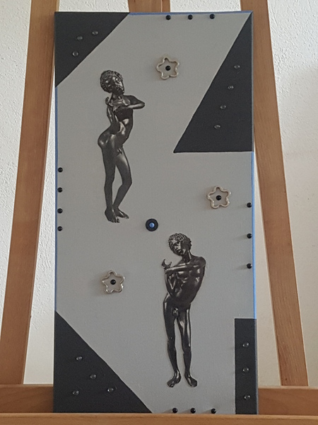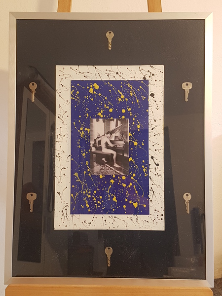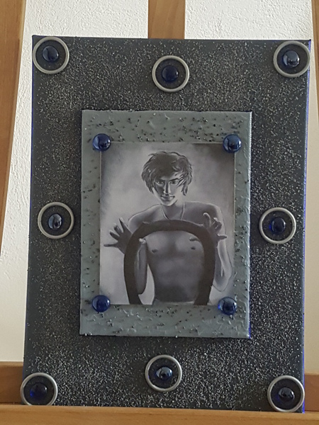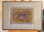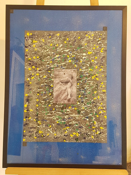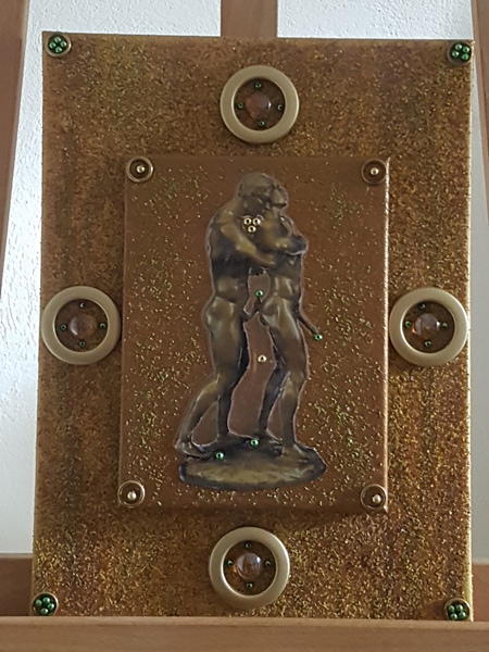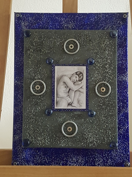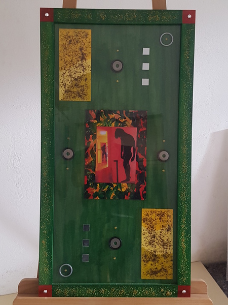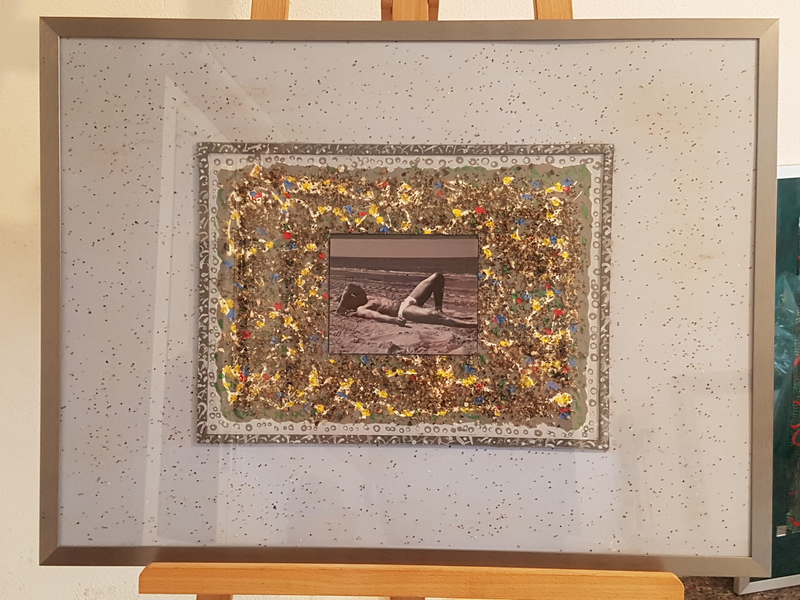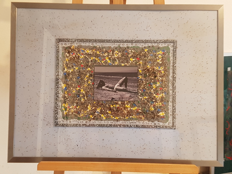 allein genügen mir nicht immer. Darum verwende ich in einigen Bildern getrocknete Blumen und Gräser aus der Natur. Auch bunter Sand, Glasscherben und viele andere Materialien kommen zum Einsatz.
